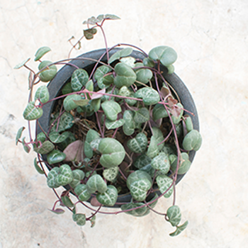 The ever-popular Chain of Hearts gets its name from the heart shaped leaves that grow a few centimeters apart from each other along cascading stems. They are best displayed in a hanging pot or on a high shelf to show off the beautiful long vines.