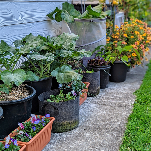 Dress up outdoor areas with tasty edibles, green foliage and pretty blooms.