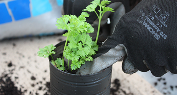 - Herb seedlings of your choice (we chose coriander, parsley and thyme)
