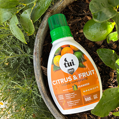 Help your fruit grow and produce to its full potential with regular feeding. Feed trees in the garden every three months with Tui Citrus Food, which contains essential nutrients for healthy foliage and fruiting. For a quick nutrient boost and fast visible results, apply Tui Citrus & Fruit Liquid Superfood - ideal for pots and containers as well as the garden. Water your trees deeply twice a week while they’re getting established, especially in dry spells. In autumn and early spring, mulch around the base to retain moisture, suppress weeds, and regulate soil temperature.