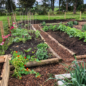 I’m Melika from @our.vineyard.garden, and I’ve recently discovered a love for gardening. We built our garden last year on our home vineyard in Kerikeri. It began as only a couple of raised beds but it’s now 170 square metres and is surrounded by fruit and olive trees.