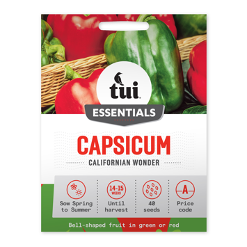 Tui Capsicum Seed - Californian Wonder offers bell-shaped fruit that can be picked green or left to ripen to red for a sweeter taste.