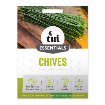 Tui Chives Seed offers an edible and decorative herb with mild onion flavour. A cut and come again crop - the plant will regrow for continuous harvests.