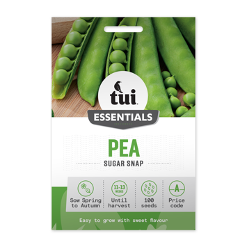 Tui Pea Seed - Sugar Snap are easy to grow with sweet flavour and thick walled, crisp pods. Tasty raw or cooked, both pods and peas can be eaten.