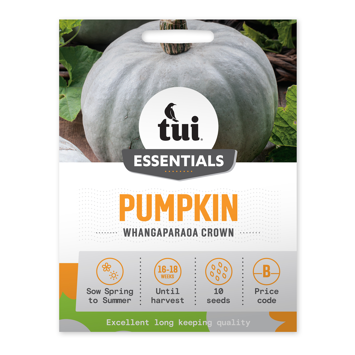 Tui Pumpkin Seed - Whangaparaoa Crown is an heirloom variety that offers excellent long keeping quality with grey skin, orange flesh and sweet flavour.