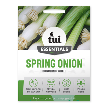 Tui Spring Onion Seed - Bunching White is an easy to grow variety, resistant to pests and diseases. Succession sow for a continuous harvest and tasty garnish at your fingertips through the seasons.