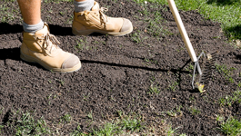 - Lightly fork into the soil around plants.
