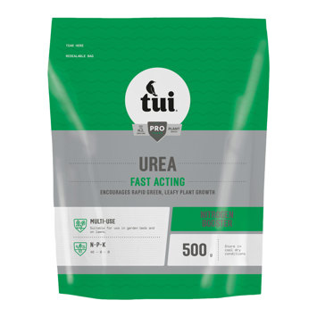Nitrogen is essential for plants to maintain healthy green leaves and growth. Nitrogen deficiency is commonly shown by a silvery sheen on leaves, stunted pale green or yellow leaves and poor plant growth. The addition of Tui Urea to your garden provides a fast-acting source of nitrogen to correct deficiencies. It is ideal for use around leafy vegetables, shrubs and lawns.
